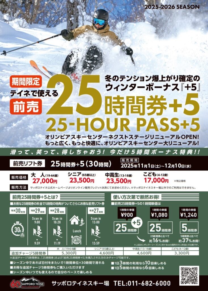 2025/11/15(土)より、サッポロテイネスキー場内券売所 (ハイランドスキーセンター 3Fチケットカウンター)にて販売・引渡しいたします。
