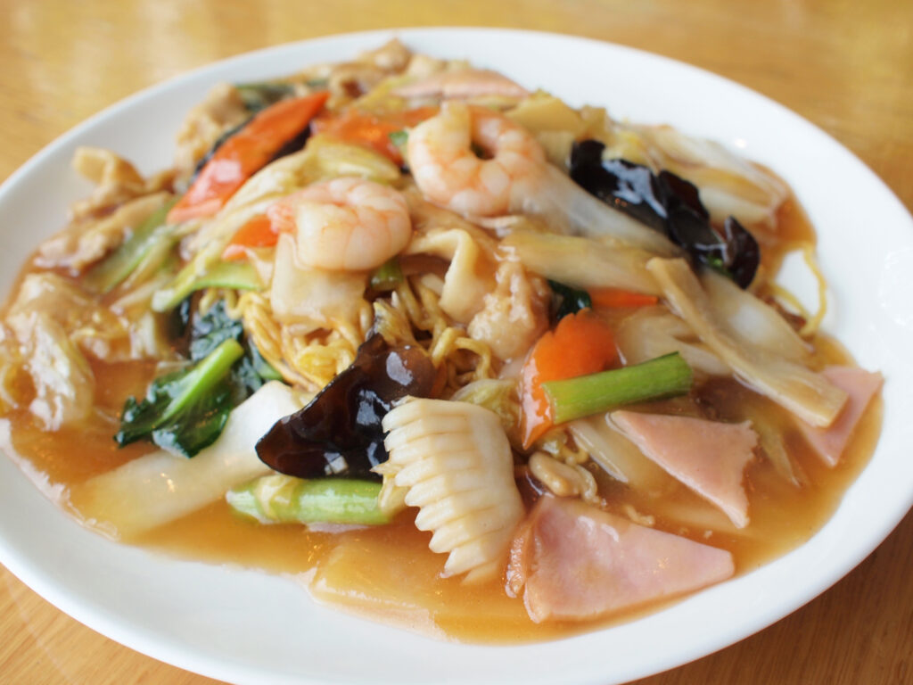パリッと焼いた麺に、とろ〜り熱々のあんがたっぷり。