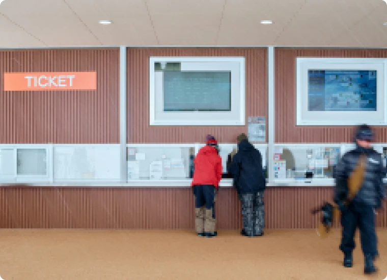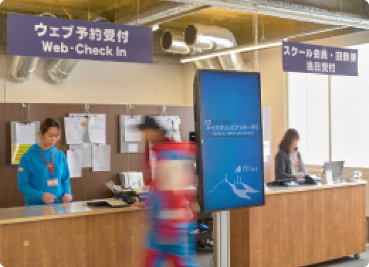 The ticket counter is located on the 3rd floor. We offer the best ticket options based on your group size, skiing time, and meal preferences. Please feel free to ask our sales counter staff when purchasing tickets. Additional ticket machines are available on the 3rd floor of the Olympia Ski Center and at the SEIKADAI Snack House.