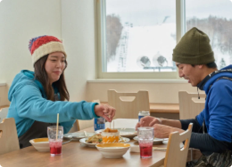 Located on the fourth floor of the Highland Ski Center—the hub of the Highland Zone and a one-stop center house—is the spacious 650-seat restaurant ‘Skadi’. Our diverse menu features ramen made with custom-made noodles from Hokkaido wheat and our homemade umami broth, alongside soba, rice bowls, pasta, curry, and more. Experience flavors that redefine the image of ski resort food.