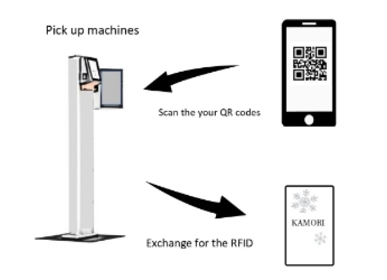 On the day, you will exchange for the RFID( IC lift ticket )at the pickup machine.